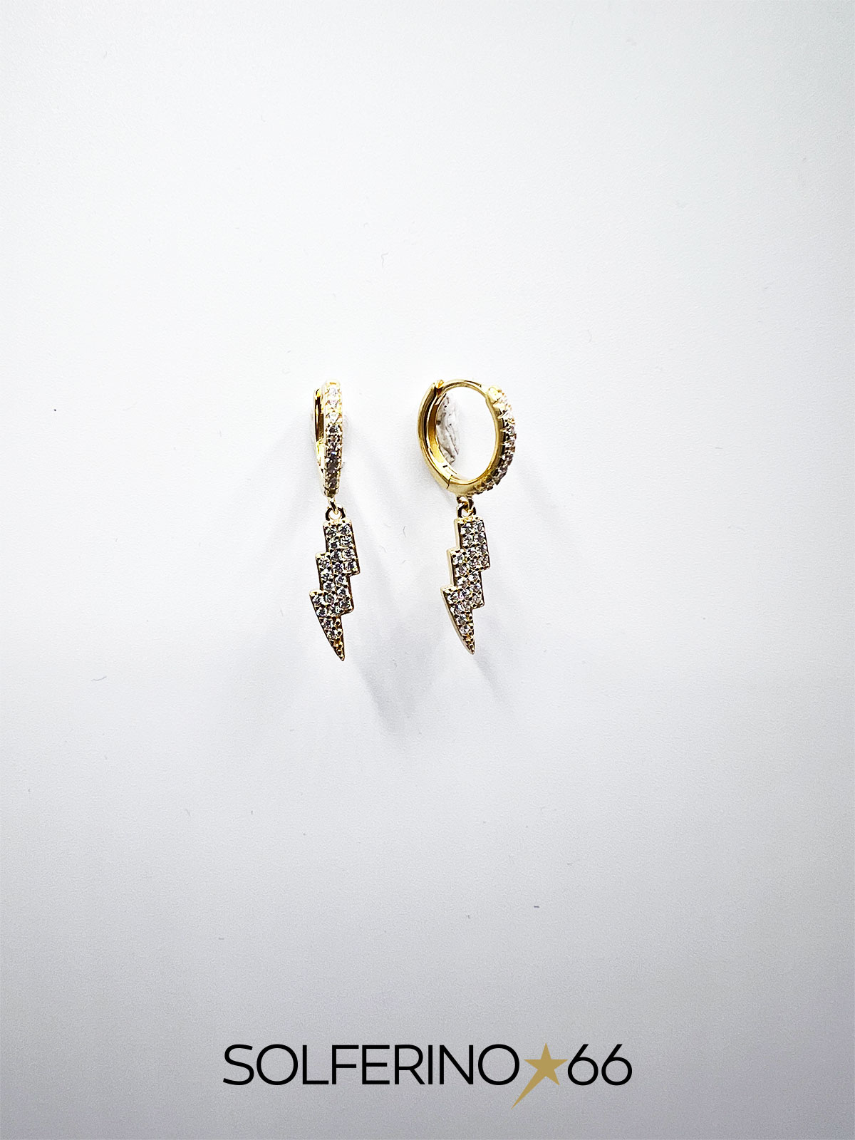 Orecchino in argento dorato a cerchietto con fulmine pendente ricoperto di zirconi