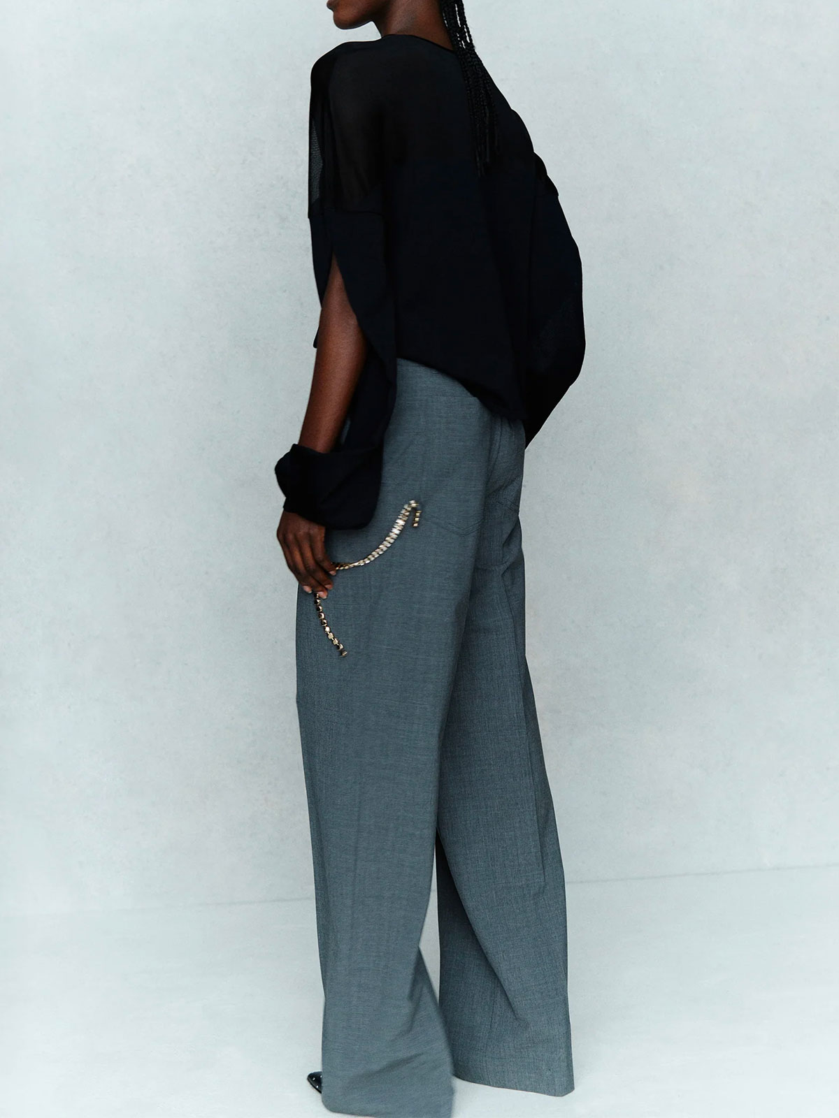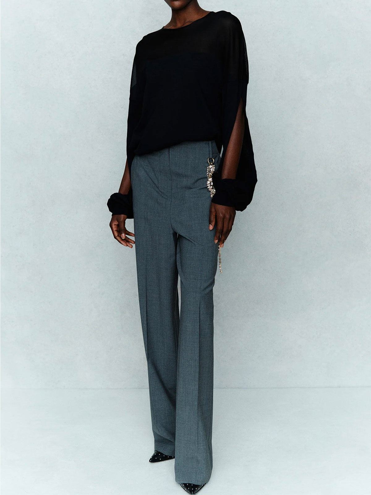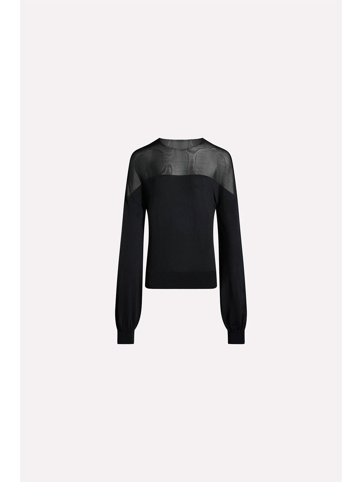 Maglia girocollo con carrè in viscosa trasparente, dettagli cut out lungo lemaniche, vestibilità slim, lunghezza al bacino.