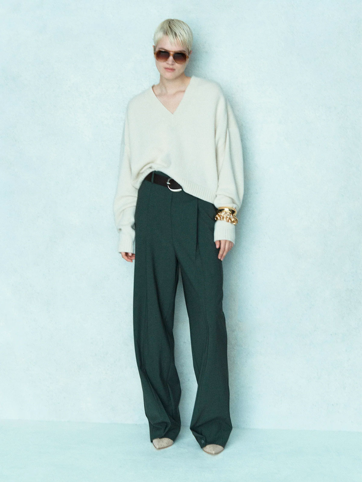 Maglia scollo a V in misto lana/cashmere, maniche a banana, vestibilità over.