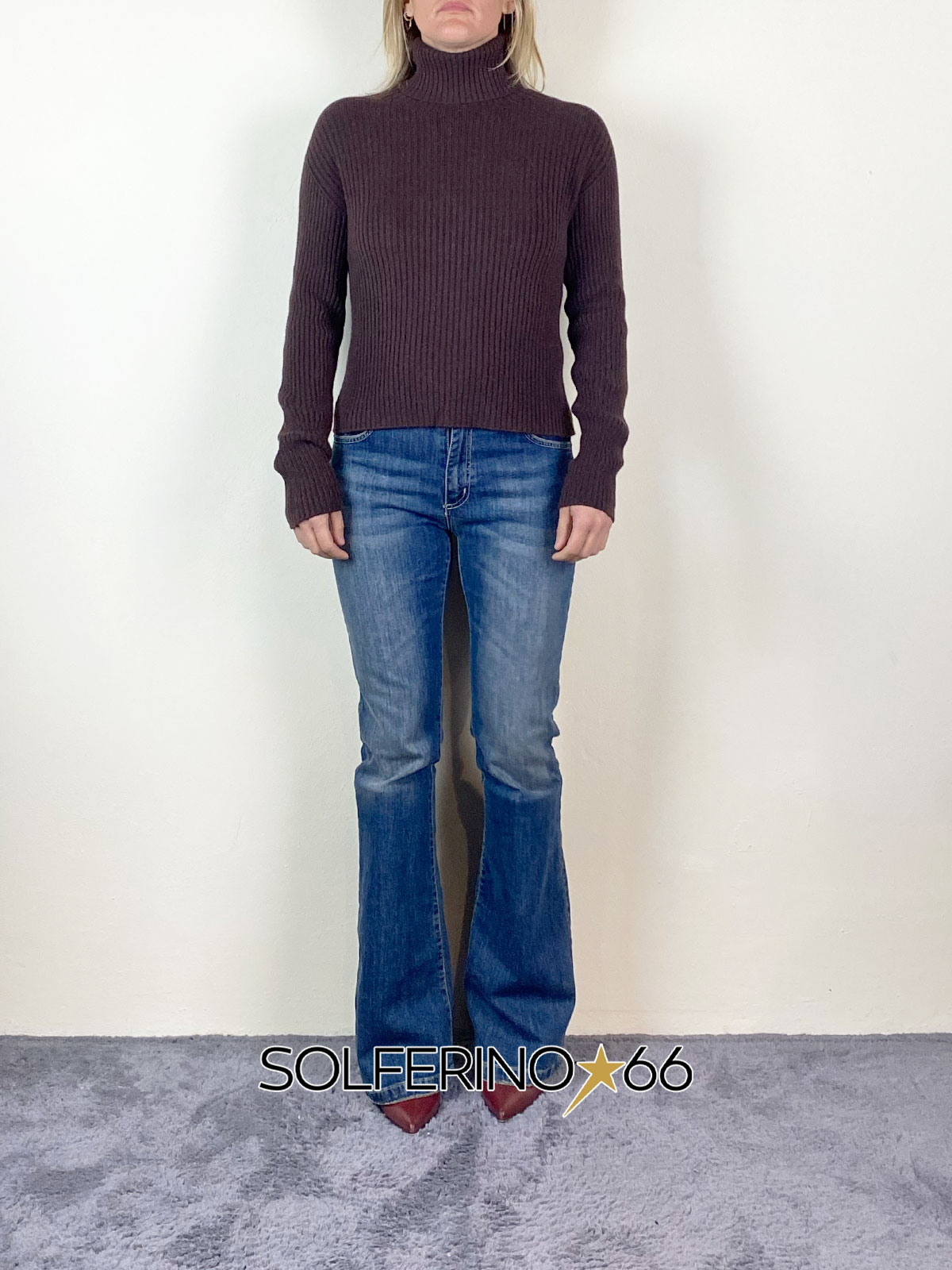 Dolcevita in maglia a coste a manica lunga, modello crop regular fit.
