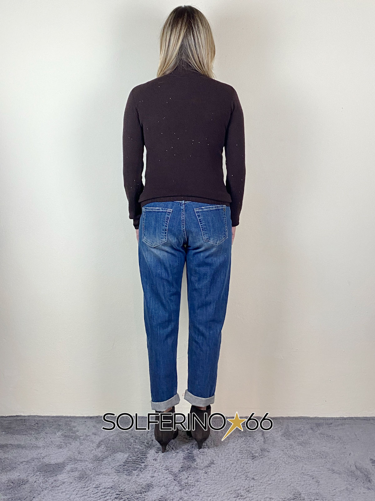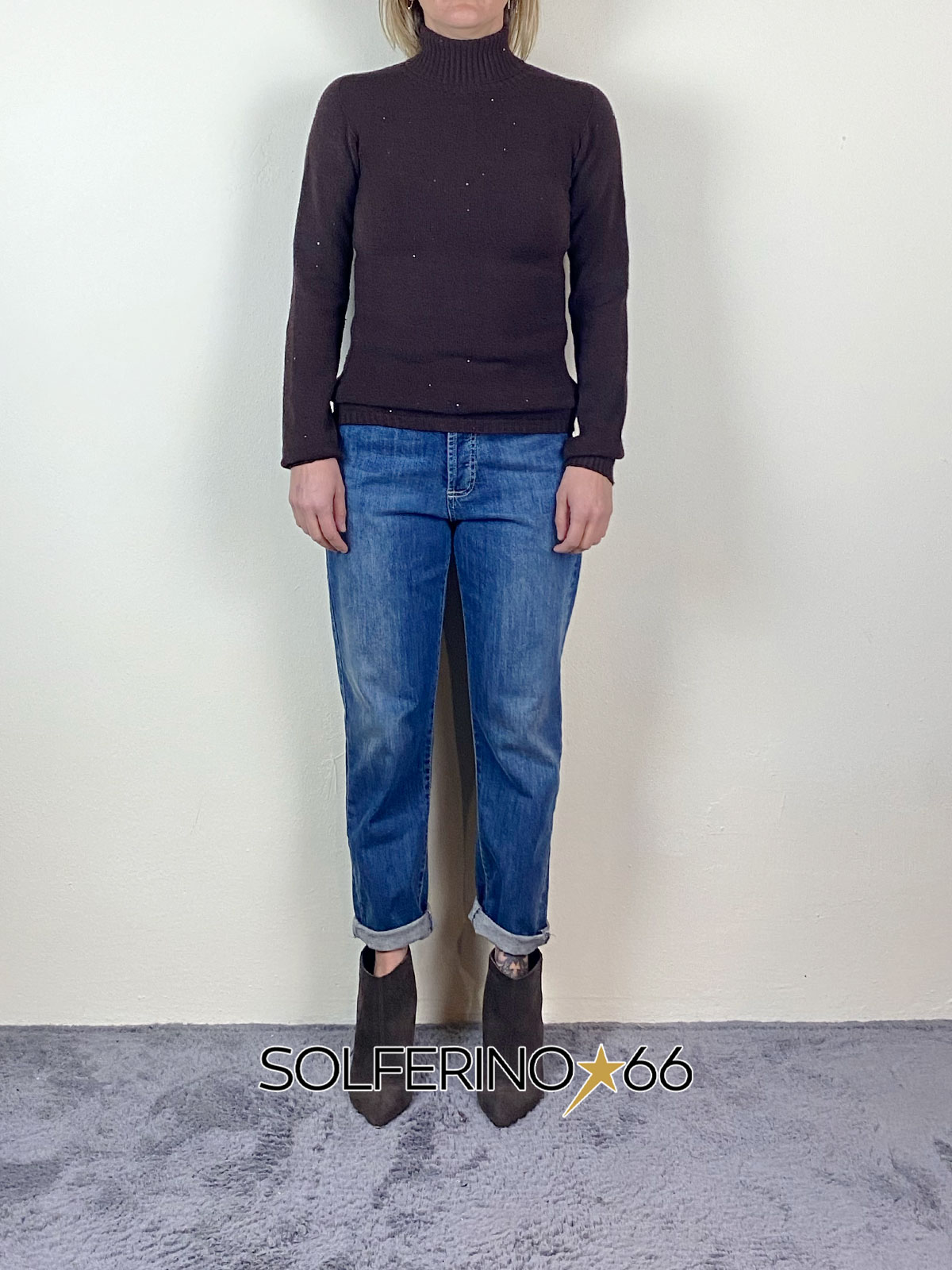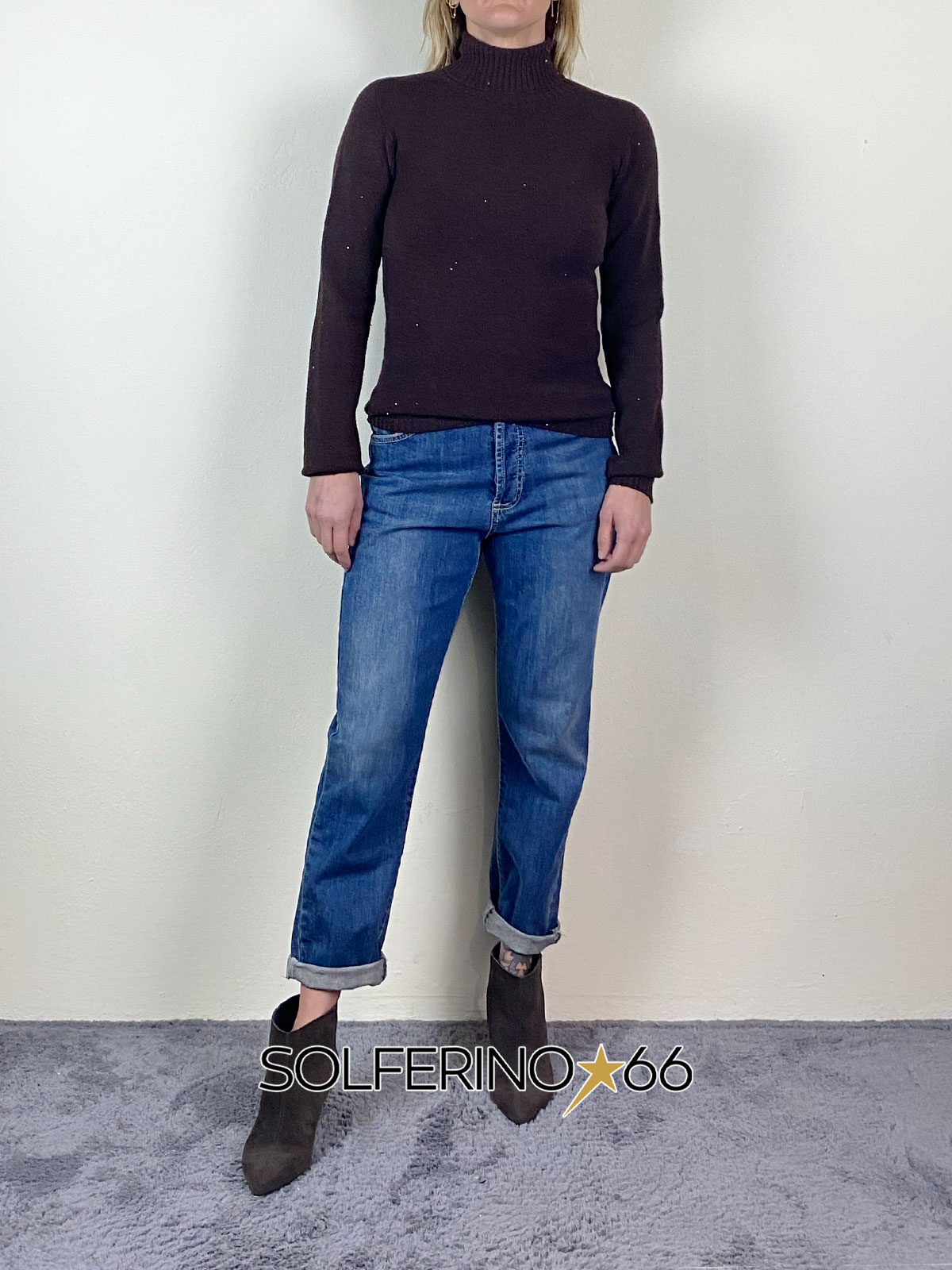 Dolcevita in maglia di viscosa con dettaglio micro paillettes applicate, regular fit.