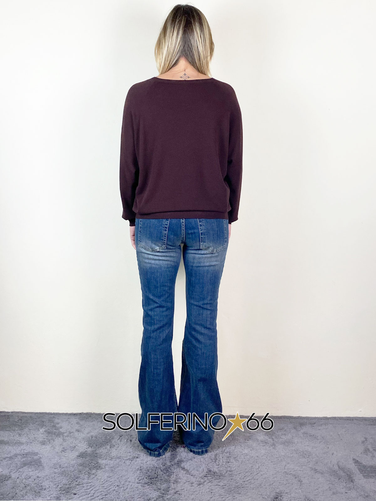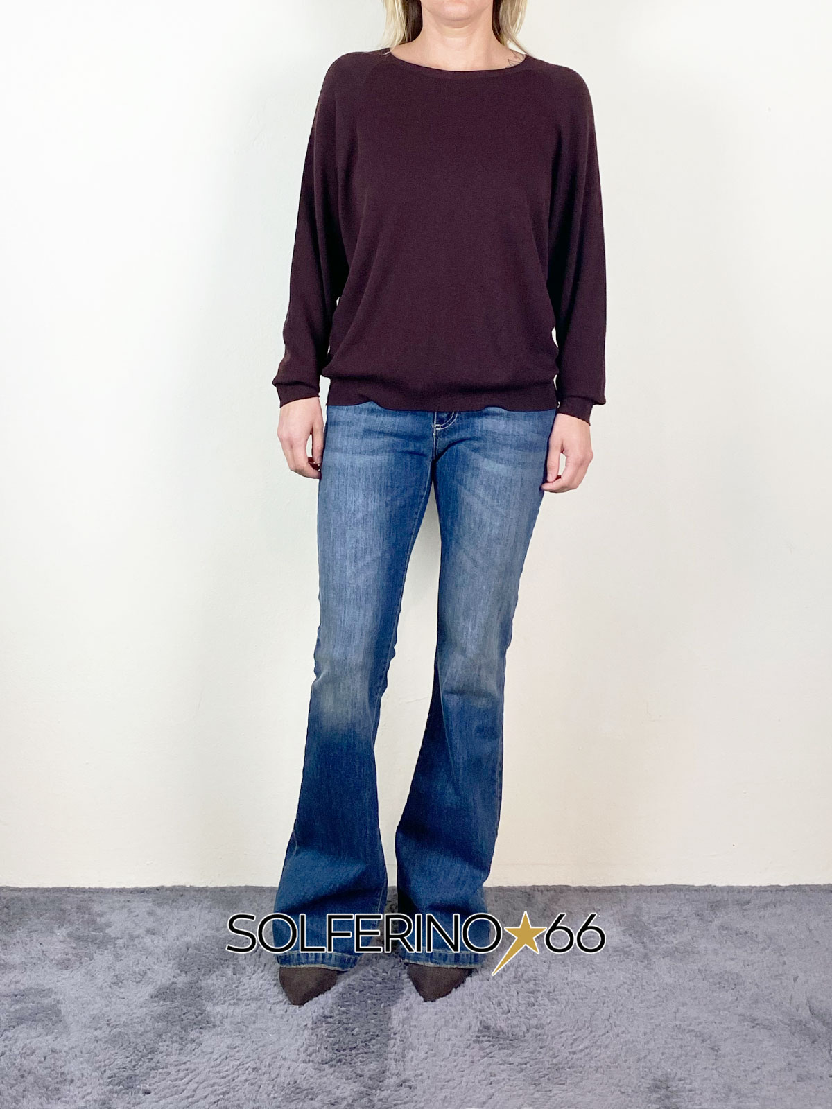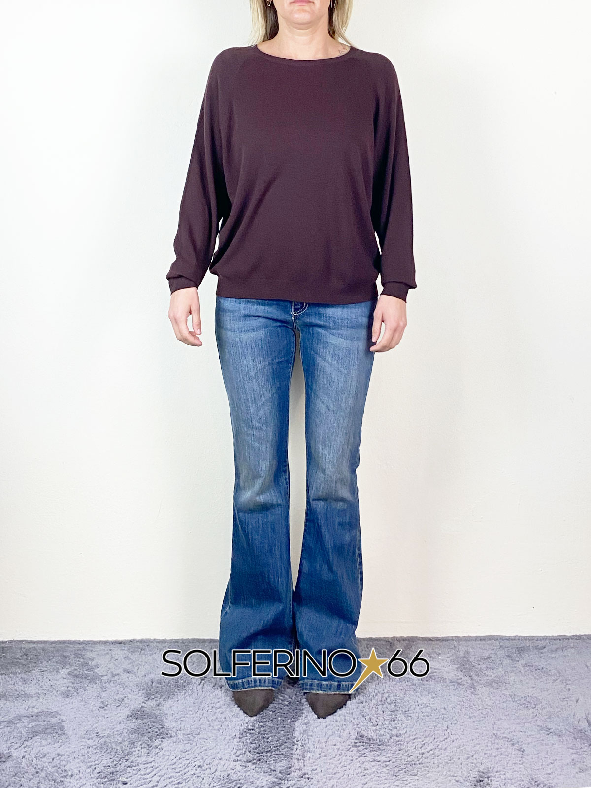 Maglia girocollo a manica lunga in viscosa, modello oversize.