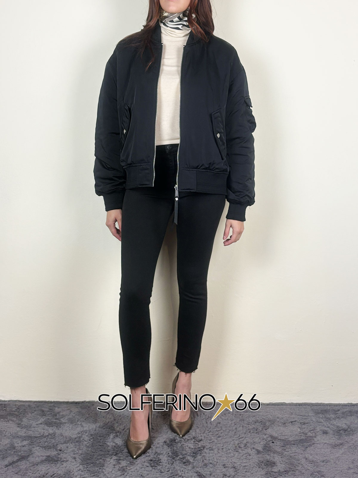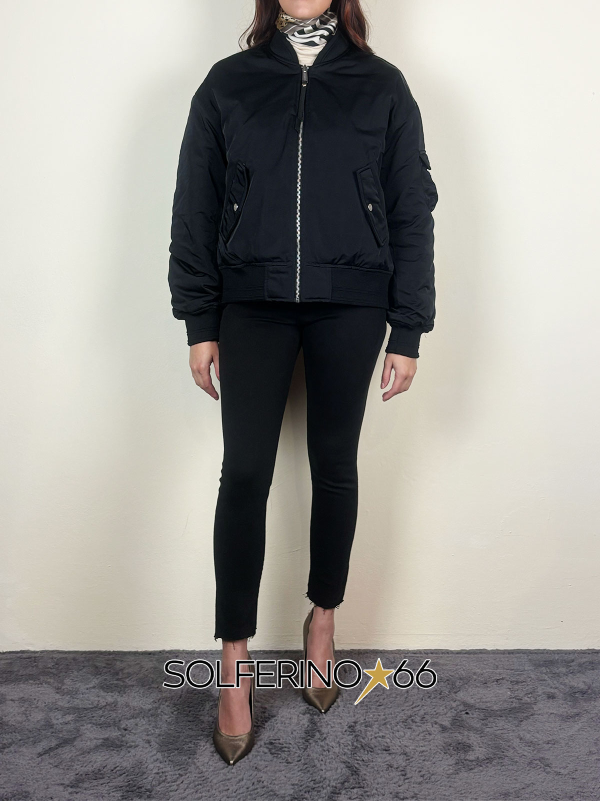Bomber reversibile in tessuto a contrasto, leggera imbottitura interna. Vestibilità over.