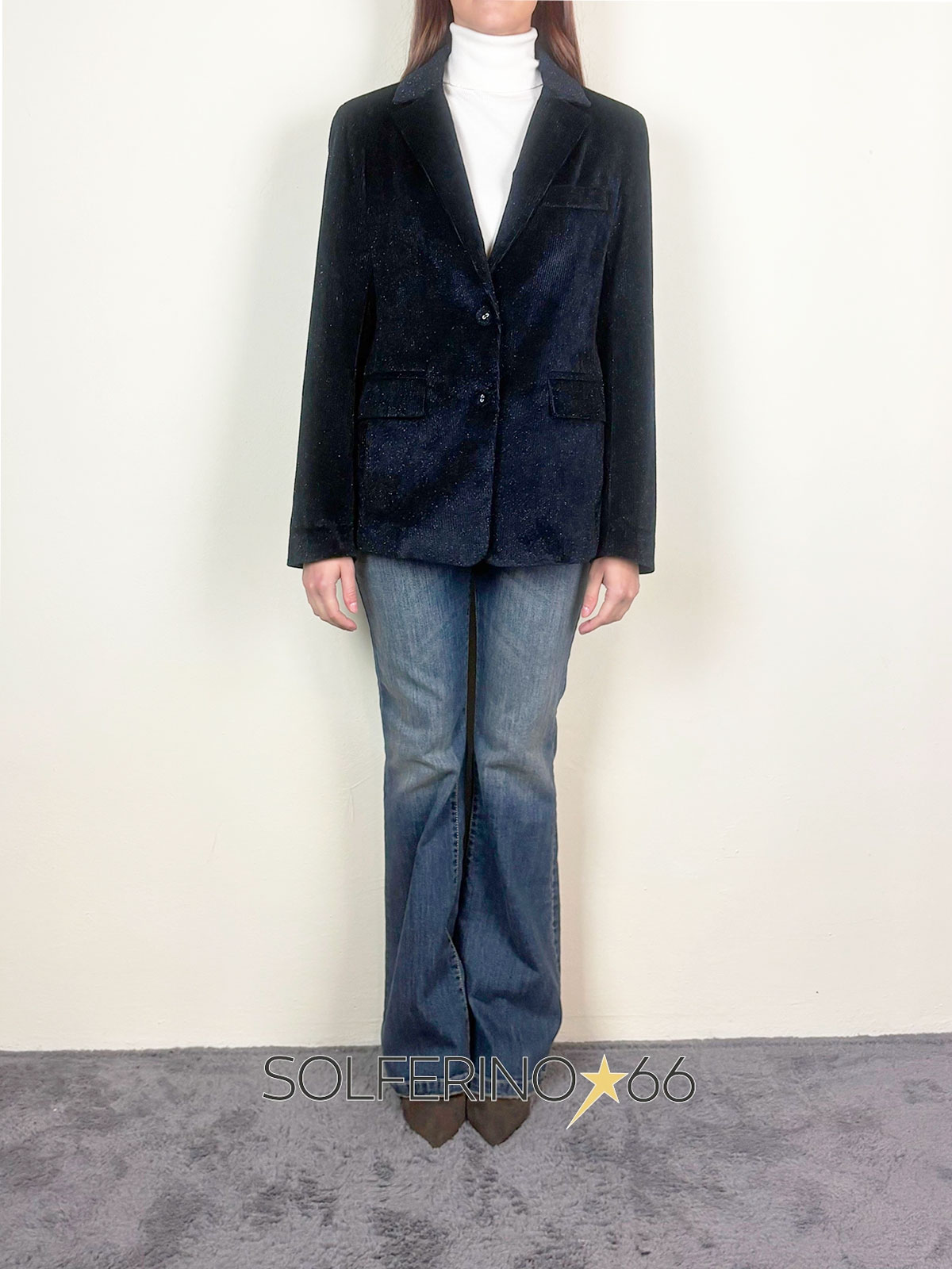 Blazer monopetto in velluto a costine blu notte con glitter.