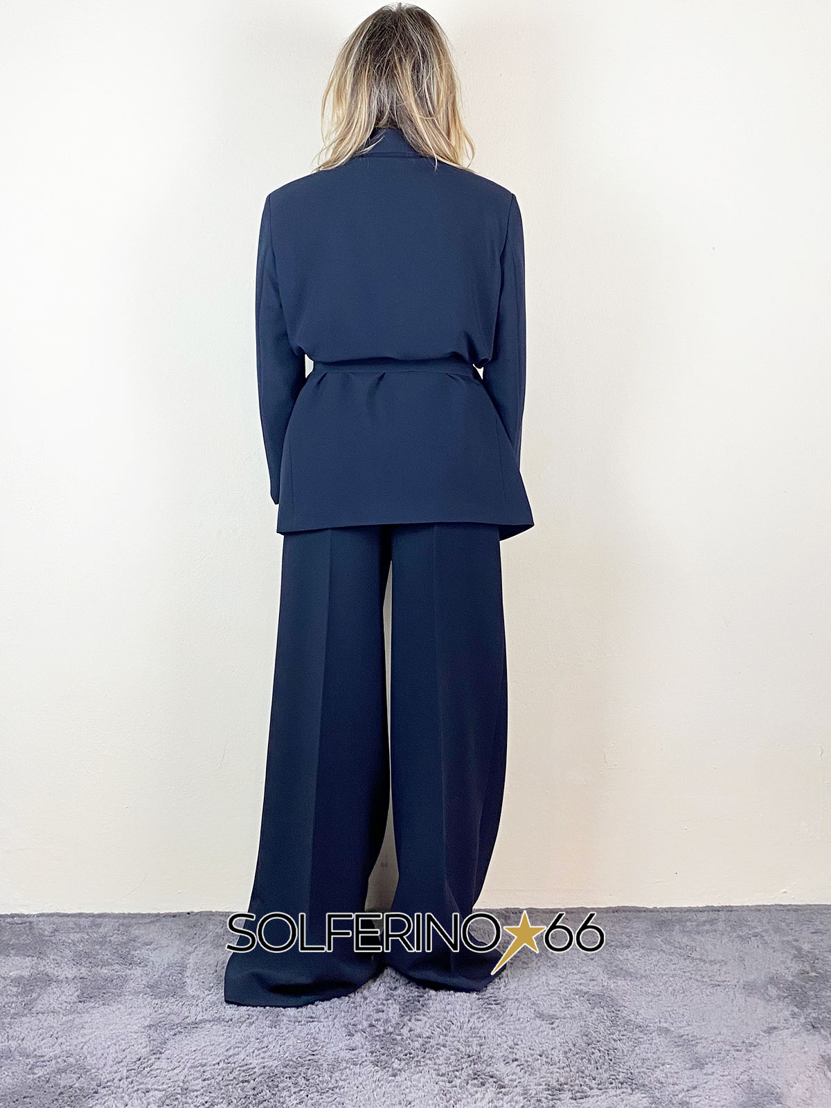 Blazer con cintura in vita abbinata, collo sciallato, spalline imbottite e tasche con pattine. Vestibilità oversize.