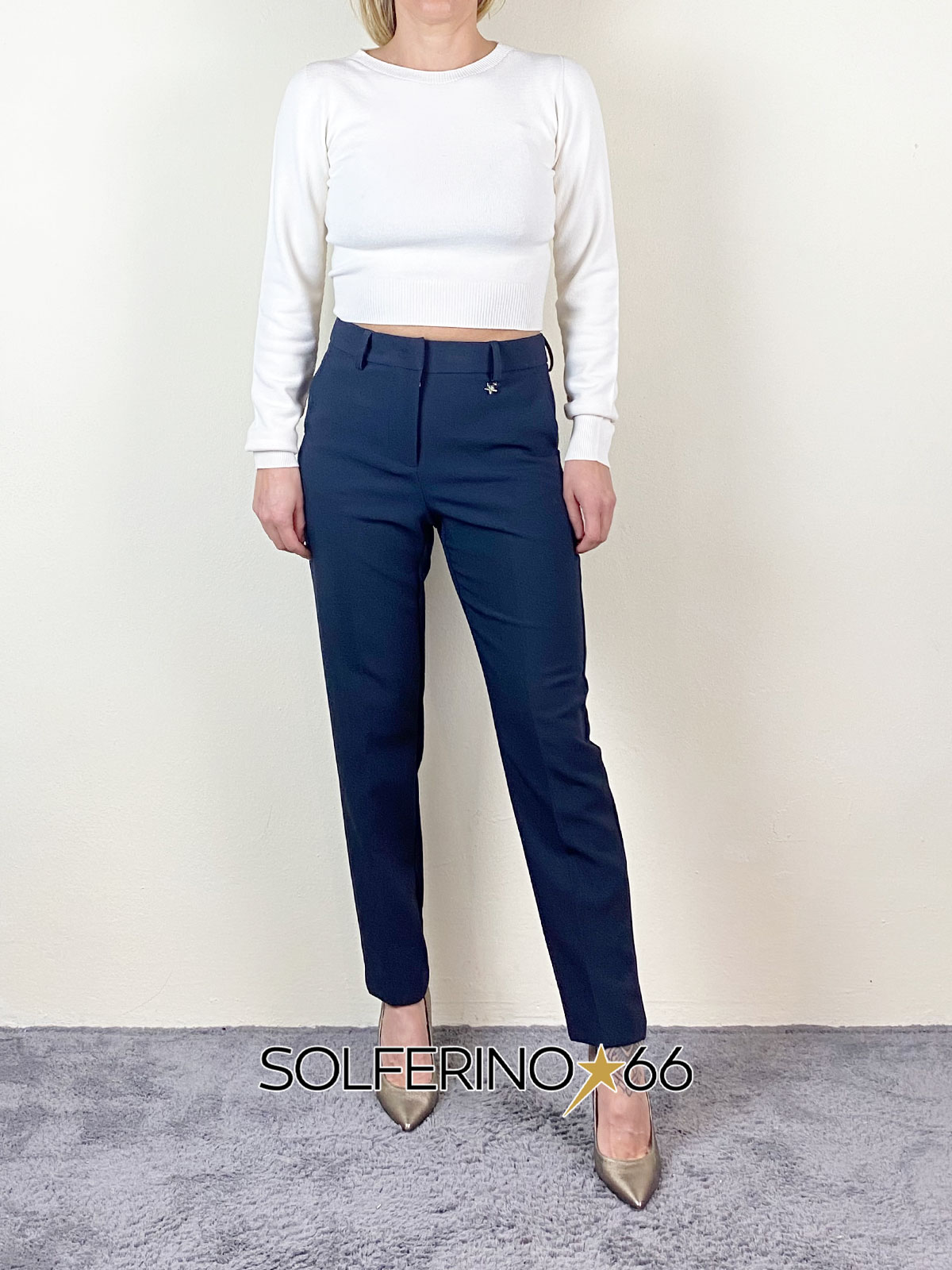 Pantalone a sigaretta a vita alta con tasche a filo e spacchetto sul fondo gamba.