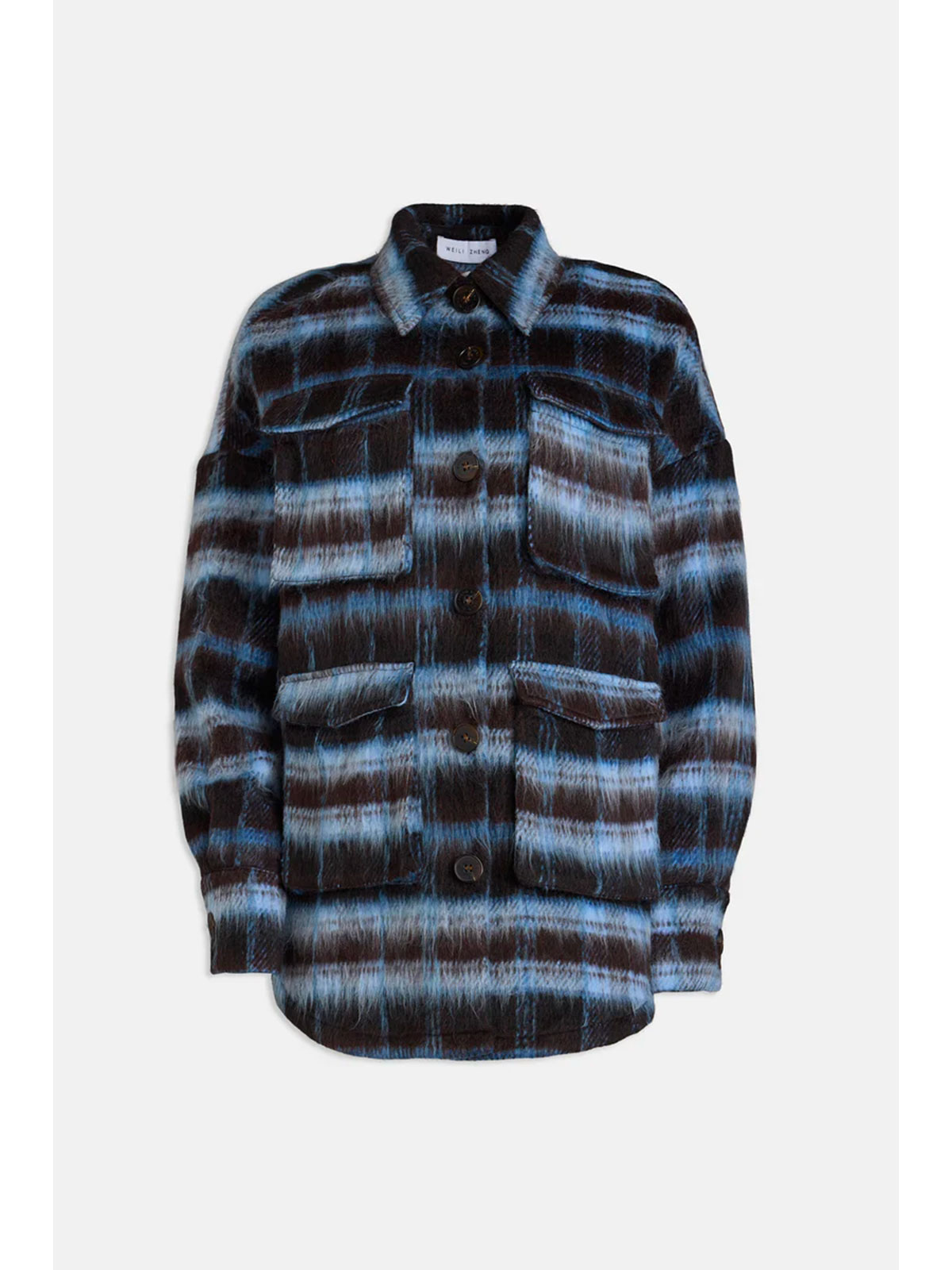 Giacca camicia in panno check con dettaglio di maxi tasche.