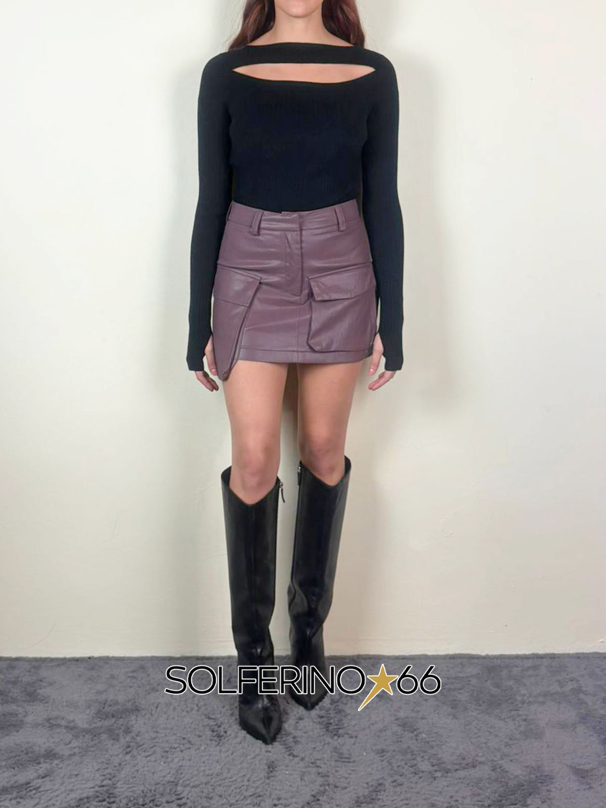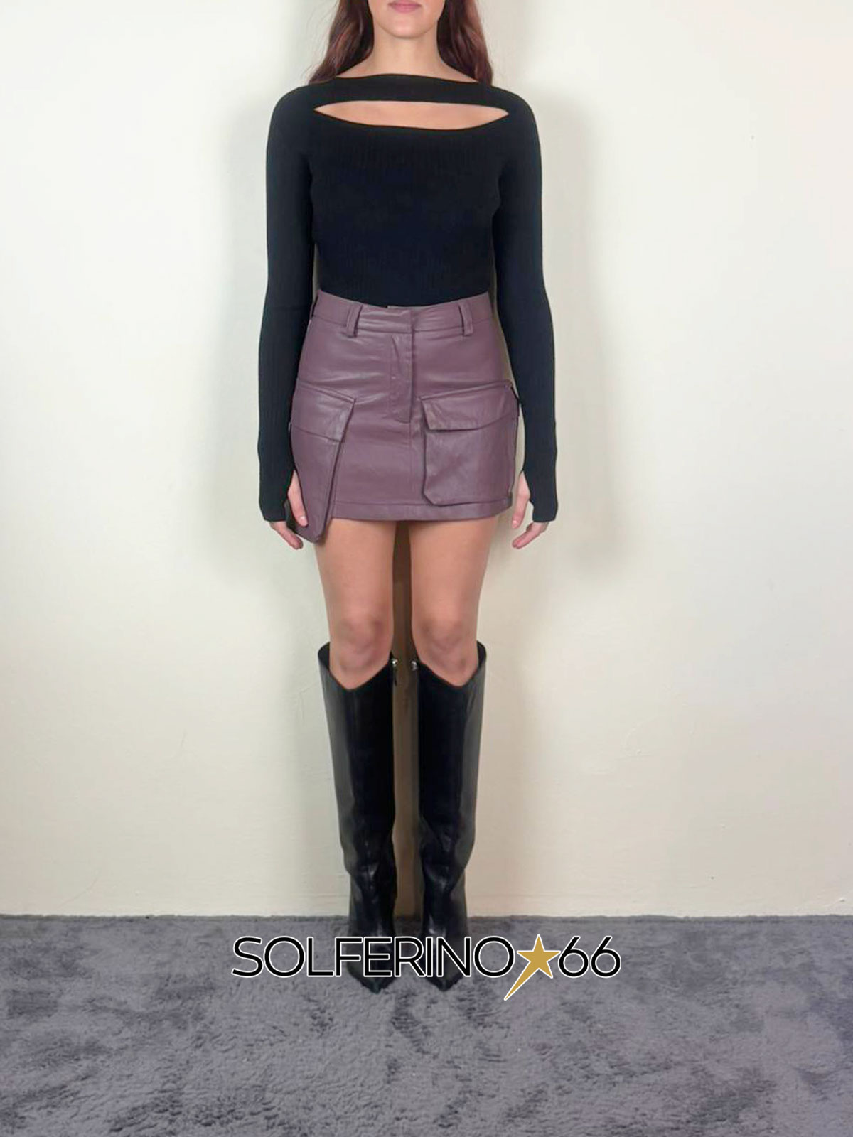 Gonna mini stile cargo sfoderata in simil nappa con dettaglio tasche applicate.