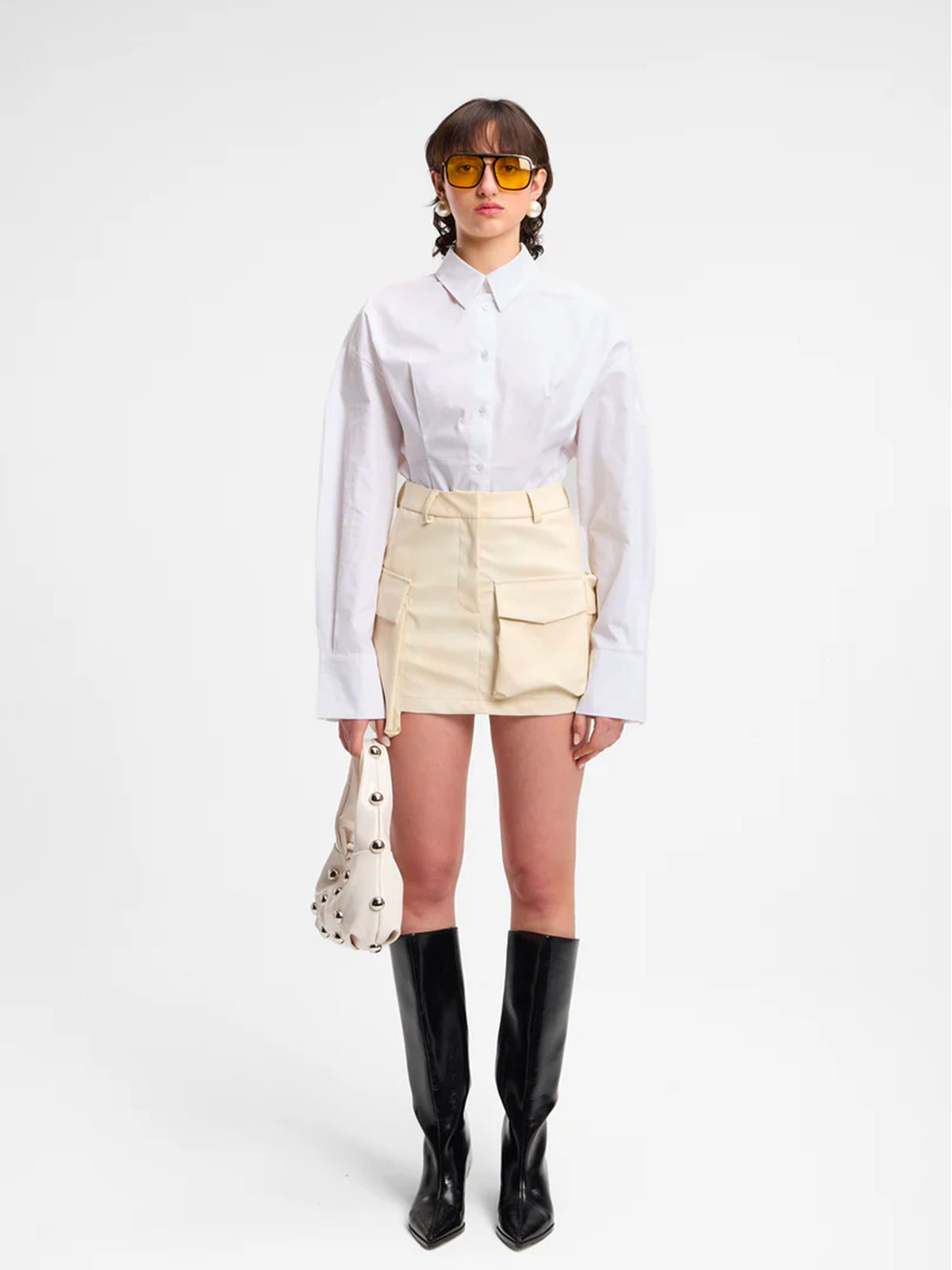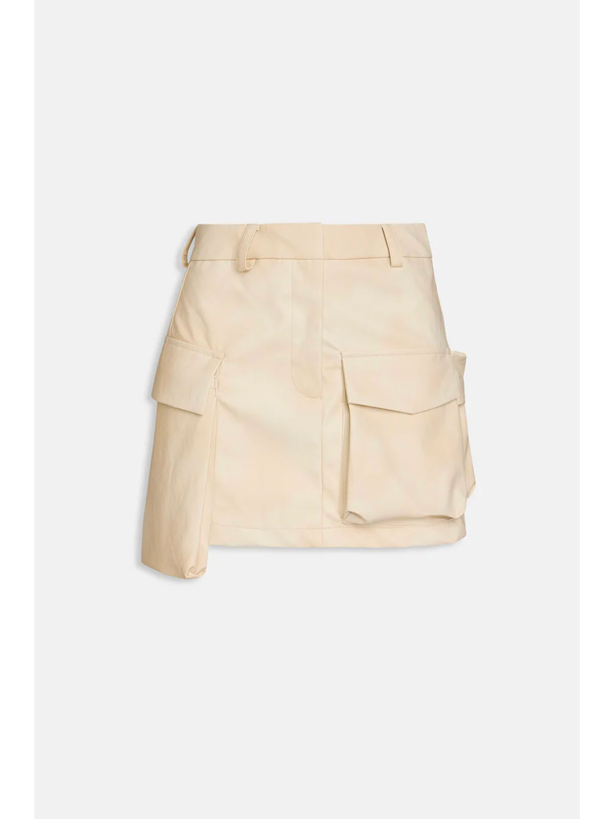 Gonna mini stile cargo sfoderata in simil nappa con dettaglio tasche applicate.