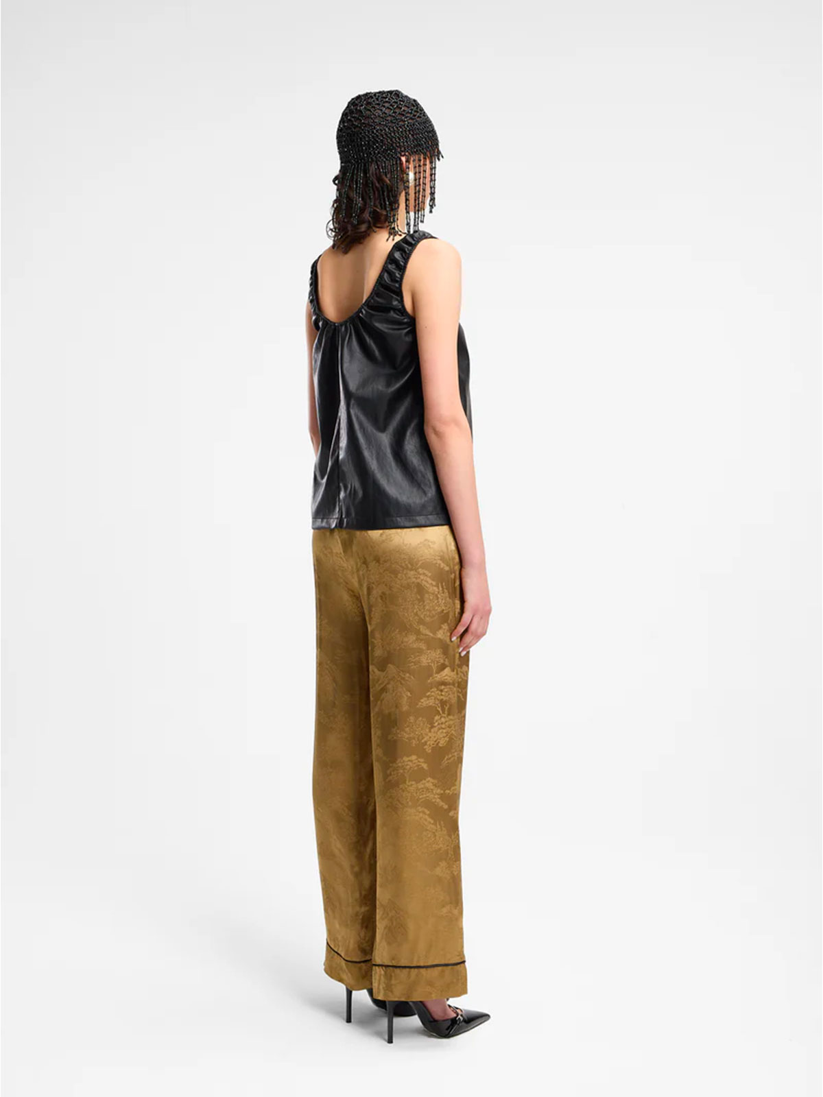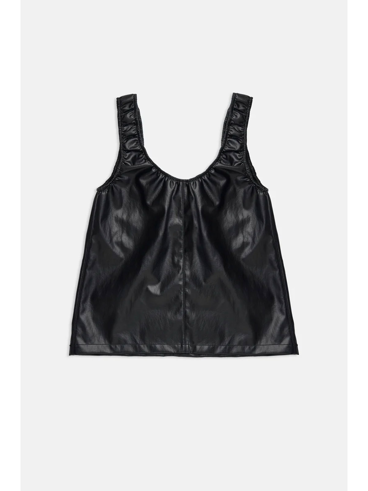 Top corto con arricci in simil nappa, modello A-line.
