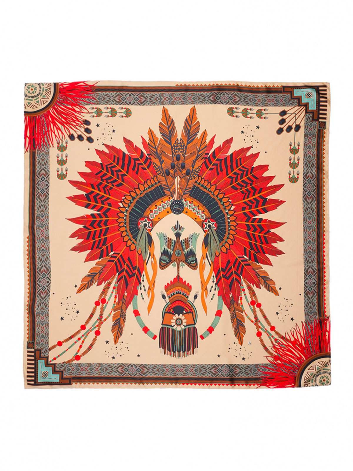 Quest’inverno, la stampa Nouveau Western è impreziosita da un sontuoso e imponente copricapo indiano al centro, impreziosito da simboli tribali su ogni angolo della sciarpa. Elemento fedele e ricorrente del DNA WILD, i motivi dei nostri bracciali brasiliani incorniciano elegantemente la sciarpa. Si fondono con i simboli emblematici del marchio, come stelle, piume e bordi distintivi. Disponibile in tre colori, la versione beige presenta motivi rossi, kaki, neri e fulvi. Versatile, può essere indossata come sciarpa o pareo, a seconda del formato. Annodala al collo, in vita, come turbante o anche come accessorio chic sulla tua borsa.